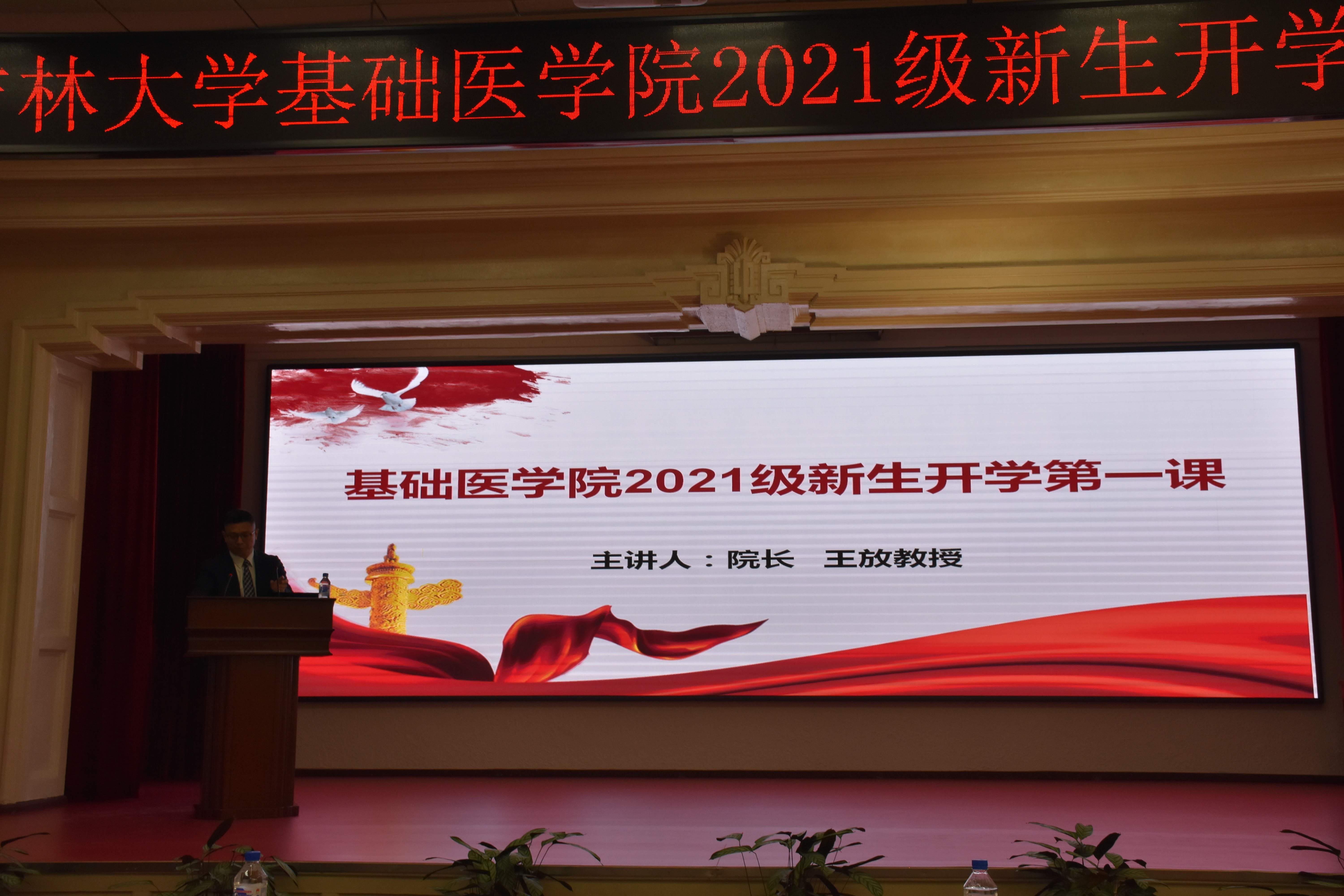 每一分时光,充分利用学院优质资源、砥砺拼搏、成为有传承、有担当、有情怀的基础人。随后,王院长为全体新生讲授了“开学第一课”,鼓励大家应以本届诺贝尔生理学或医学奖获奖的两位科学家大卫·朱利叶斯和阿登·帕塔普蒂安为榜样,在基础医学领域深海探索,以为人类发展做贡献为己任。在学习和科研的同时要肩负民族使命,做到诚实正直,博学笃志。王放院长对同学们提出殷殷期望:一是要将被动学习转变为主动学习,阅读文献,学习实验技术;二是在专业上要以兴趣为导向,多于导师沟通,做自己喜欢的科研;三是永葆创新精神,做到学科交叉,学术创新;四是敢于质疑,善于思考,永远满含好奇心;五是强健体魄,内外兼修。王院长饱含深情的第一课,更是一次精彩生动的党课,他多次强调并叮嘱同学们勿忘国耻,居安思危,要坚定理想信念,厚植家国情怀,肩负使命担当,砥砺拼搏奋进,努力成为堪当民族复兴重任的时代新人,为实现伟大复兴与祖国统一而努力奋斗。