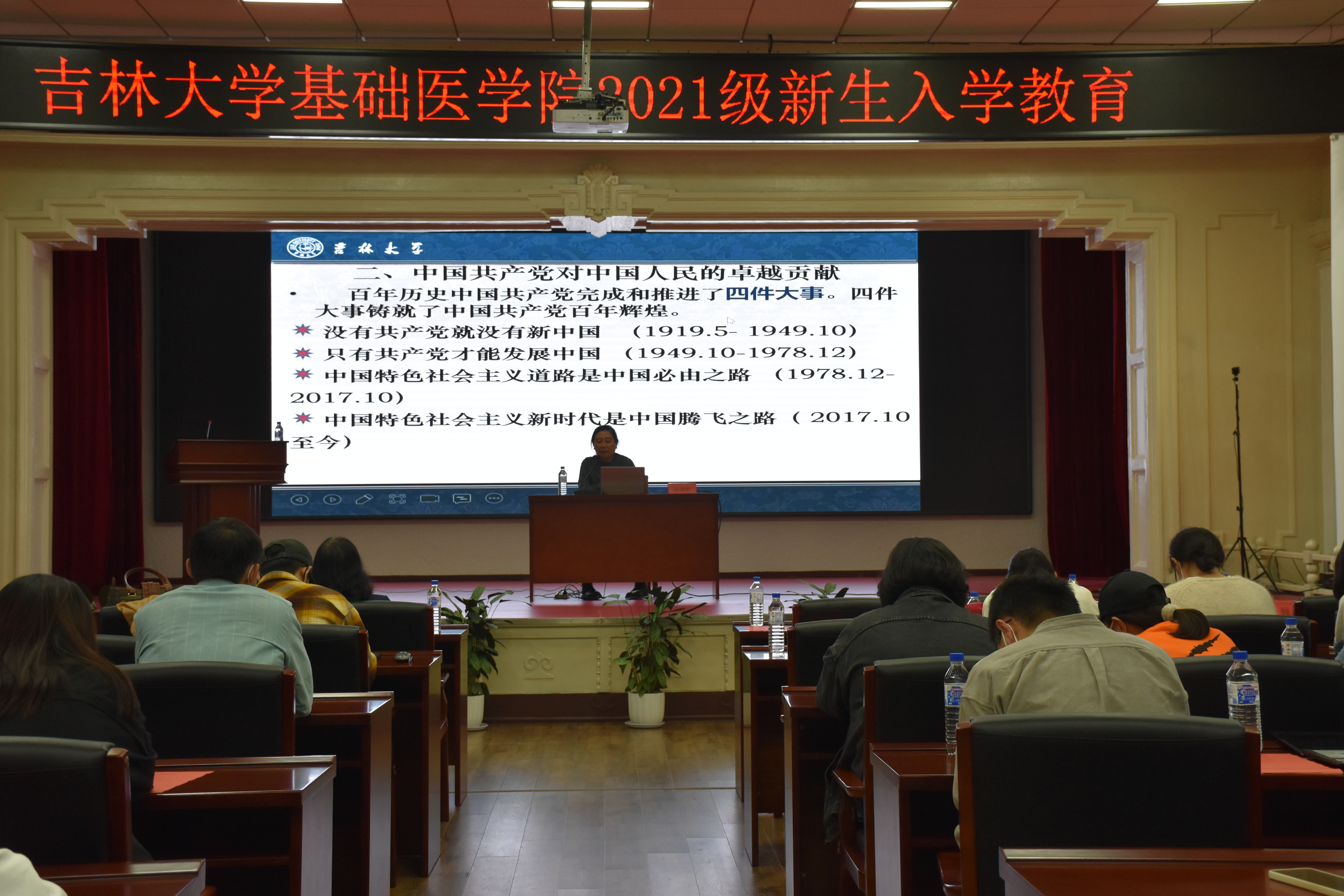 报告厅为2021级新生做题目为《中国共产党的百年辉煌历程》的专题报告。