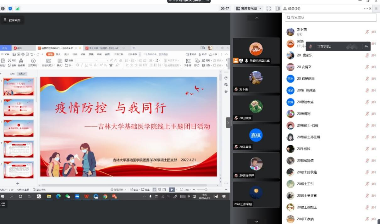 2020级硕士团支部在线上开展了“疫情防控,与我同行”主题团日活动。学院团委负责人、研究生辅导员孙佳钰老师以及2020级硕士全体团员参加,活动由2020级硕士团支书吴颖主持。