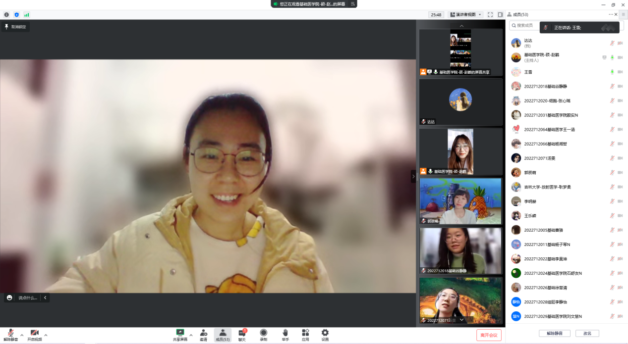 为了全面贯彻党的教育方针、推进素质教育,加强和改进大学生心理健康,提高大学生心理调节能力,培养良好心理品质,促进大学生思想道德素质和心理健康成长,更有利于大学生的科学文化素质和身心健康素质的协调发展。基础医学院学生朋辈心理辅导员于10月17日通过线上腾讯会议的方式,在2022级研究生班级中组织开展新生团体心理辅导活动。