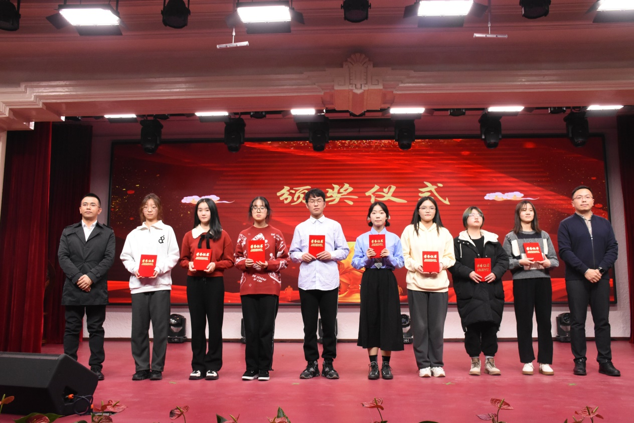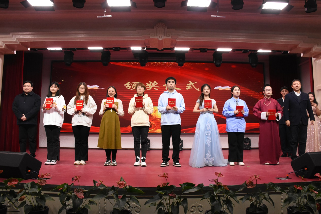 团委副书记张大权为2023年度本科生完美奖学金助学金获得者颁发证书。