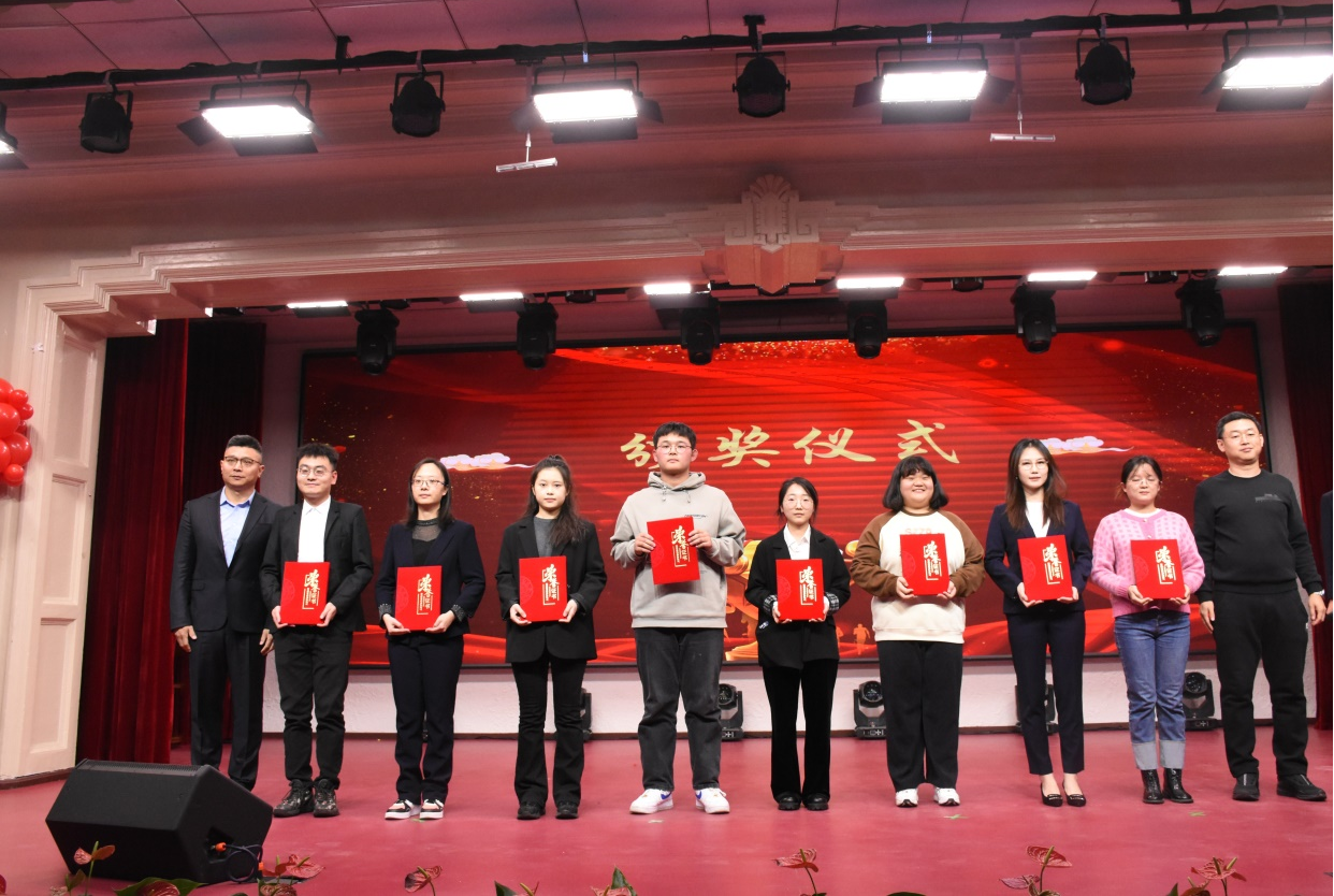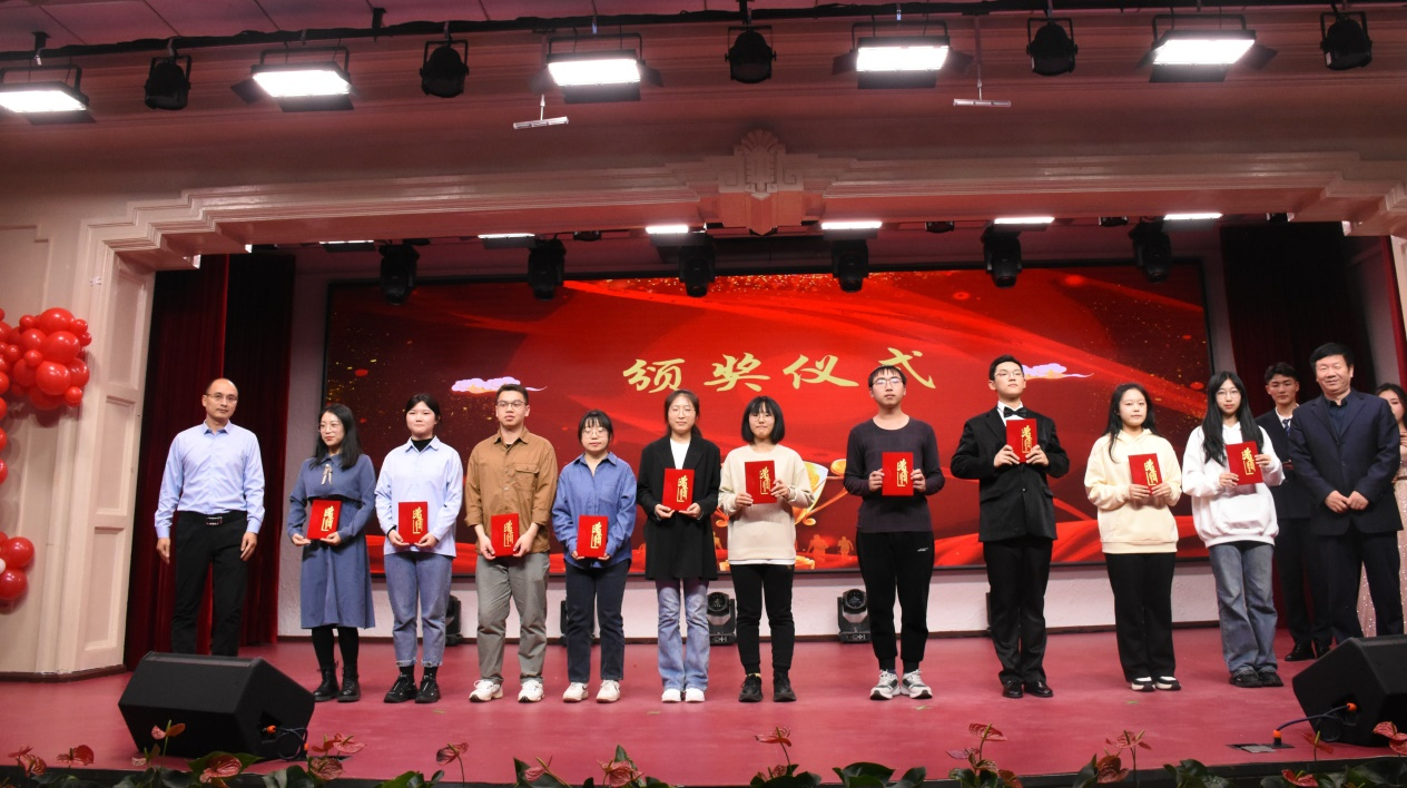 学生就业创业指导与服务中心副主任贾晓辉为2023年度研究生完美奖学金助学金获得者颁发荣誉证书。