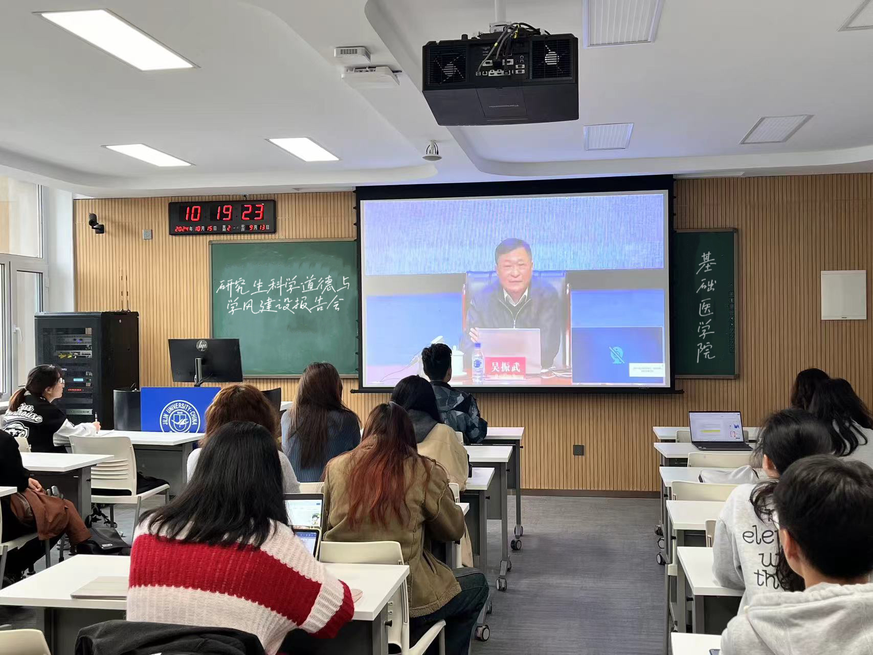 吴振武教授首先强调了学风建设对于研究生教育的重要性。他指出,良好的学风是研究生培养质量的基石,不仅关乎学生个人的学术成长,更直接影响到整个学术生态的健康发展。随后,吴教授深入剖析了当前学术领域存在的道德失范现象,如抄袭、剽窃、伪造数据等,并指出这些问题的根源在于部分研究生对学术道德的认知不足和自律意识的缺失。针对这些问题,吴教授提出了多项具体可行的建议。他鼓励研究生要树立正确的学术观念,明确学术研究的目的和意义,坚守学术诚信的底线。同时,他还倡导建立更加完善的学术监督机制和奖惩制度,以制度的力量推动学风建设不断向前发展。此外,吴教授还强调了导师在学风建设中的关键作用,呼吁导师们要以身作则,加强对研究生的学术指导和道德教育。在讲座后,全体同学深刻认识到坚守科学道德,倡导良好学风,是一项长期而艰巨的任务,是科技界、教育界义不容辞的责任,也是全社会各界共同的责任。