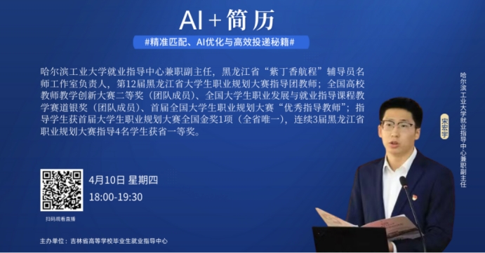 于2025年4月10日组织全体研究生线上观看了吉林省“AI赋能高校大学生重点群体就业系列直播课”首讲课程——“AI+简历:精准匹配、AI优化与高效投递秘籍”。本次活动聚焦人工智能技术在求职简历优化、岗位精准匹配及投递策略中的创新应用,旨在通过前沿技术赋能医学研究生职业发展,助力其在AI时代实现高质量就业。