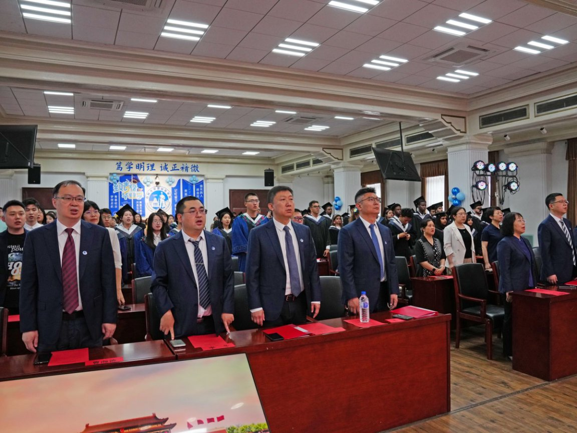毕业典礼在高昂的国歌声中拉开序幕,由副院长何侃宣读留学生毕业生名单。