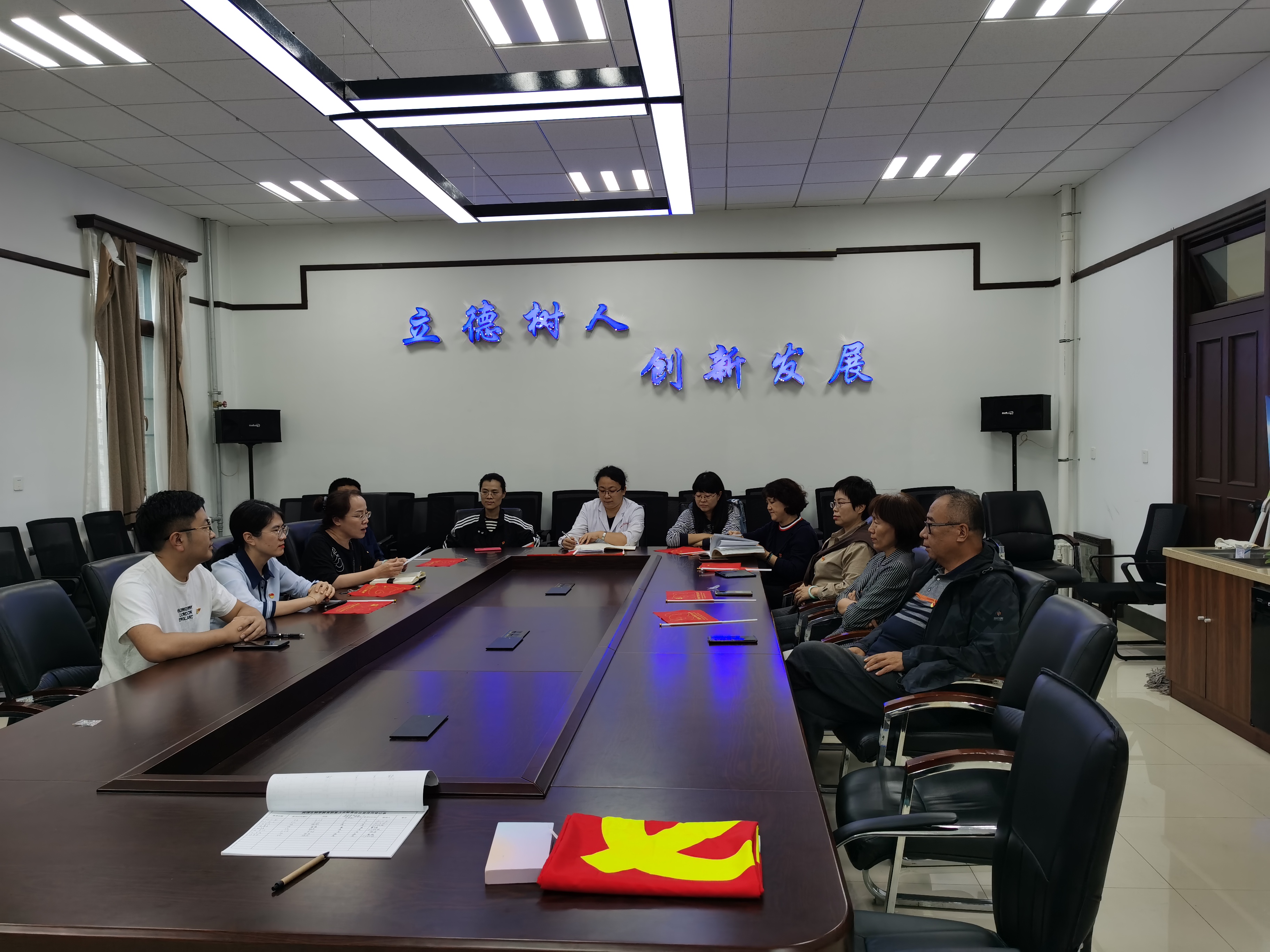 第五党支部召开了支部党员大会,认真学习了《习近平总书记给全国高校黄大年式教师团队重要回信精神》和《中国共产党党徽党旗条例》。会议由党支部书记何旭主持。