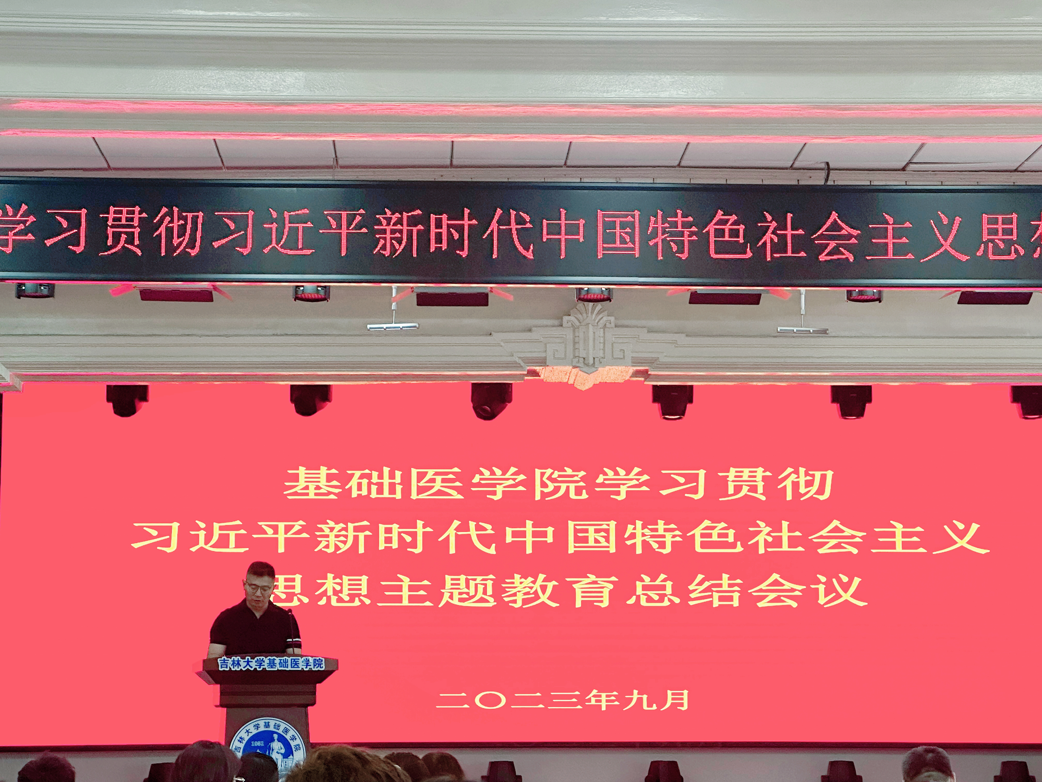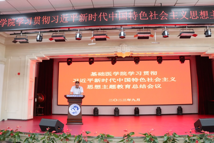 王晓荣书记从理论学习、调查研究、推动发展、建章立制等方面对学院主题教育完成情况做了系统回顾和全面总结。她表示,学院将在今后的工作中更加深刻领悟“两个确立”的决定性意义,切实增强“四个意识”、坚定“四个自信”、做到“两个维护”,不断巩固和拓展主题教育成果成效。持续推动“以学铸魂”、“以学增智”、“以学正风”、“以学促干”,推动基础医学事业高质量发展,切实把主题教育成果转化为干事创业的工作热情,为加快建设教育强国贡献基础力量。