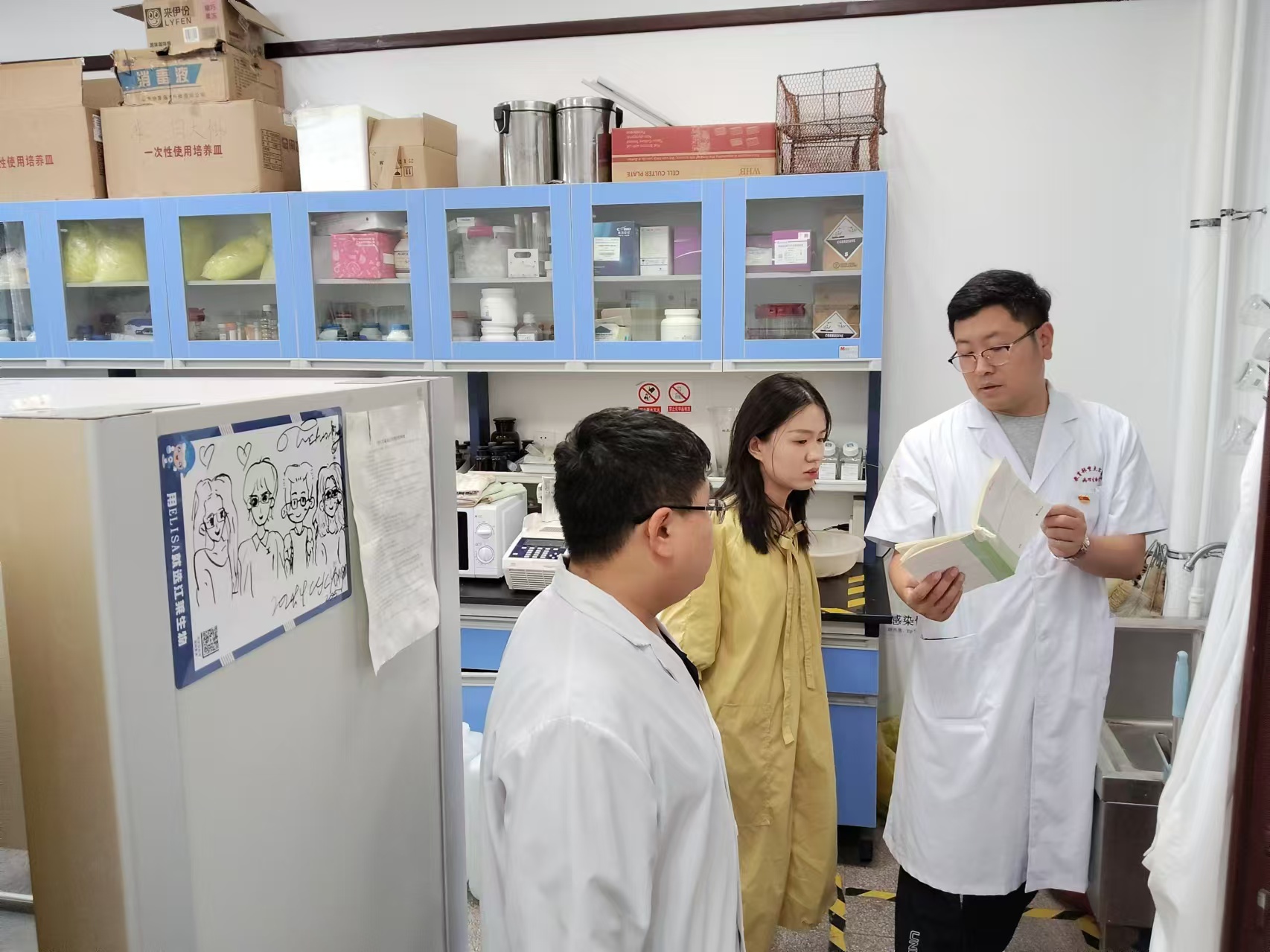 本次检查主要针对学院科研实验室、实验动物中心、基础医学教学实验中心等场所进行了实地踏查,重点对危化品的分类、储存及使用情况,高温高压仪器设备使用情况,水电气使用情况,消防器材配备情况,消防安全疏散通道安全情况,实验废弃物处置情况等进行逐一检查,对检查发现的隐患和问题进行现场反馈。
