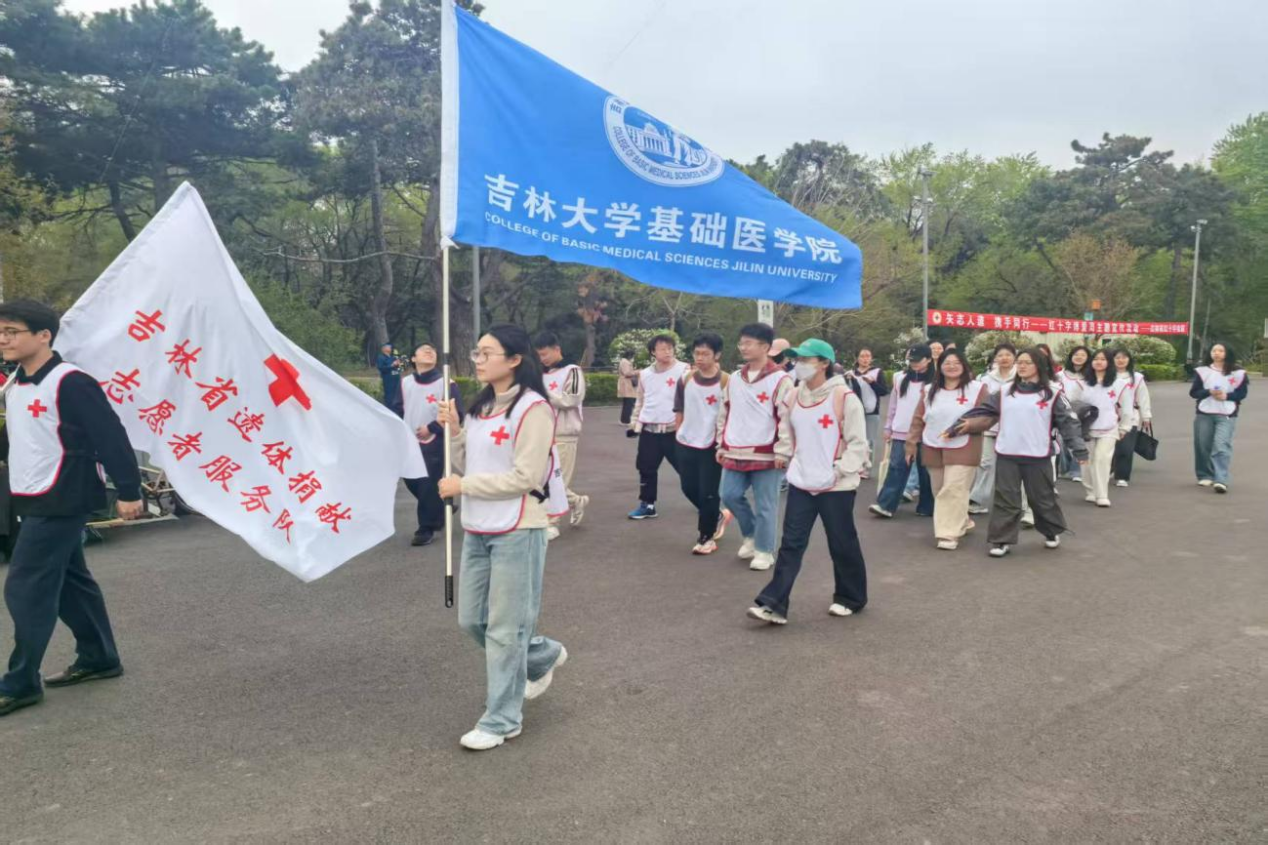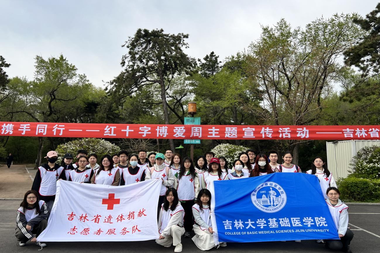 与吉林省红十字会联合开展“矢志人道携手同行”主题公益活动在碧波荡漾的南湖湖畔拉开帷幕。本次活动携手5家医疗机构、9支志愿服务队,共吸引百余名市民积极参与。在学院解剖学系教师赵亚明、研究生辅导员孙佳钰的带领下,基础医学之光志愿者协会共计50余名学生志愿者参加了本次活动,开展了“健康公益行”、“三救三献”宣传等活动,以蓬勃之姿践行人道使命,让红十字精神在初夏的暖阳中熠熠生辉。