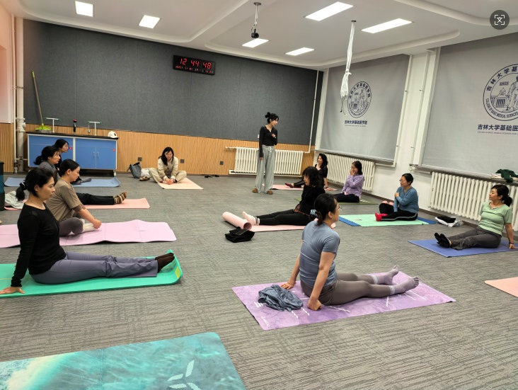 同时,为帮助女教师缓解教学、科研压力,增强身体素质,学院妇委会特别开设“优雅绽放”瑜伽训练课。课程邀请体育学院专业瑜伽导师执教,每周两次利用午间准时开展,通过系统的体式训练、呼吸调节和冥想放松,帮助教师在繁忙工作之余舒缓压力、提升状态。学院配备了专业的瑜伽砖、平衡波速球等器材,为学院女教师创造了优质的训练环境。课程开展以来,获得了参与教师的一致好评,成为学院午间一道亮丽的风景线。