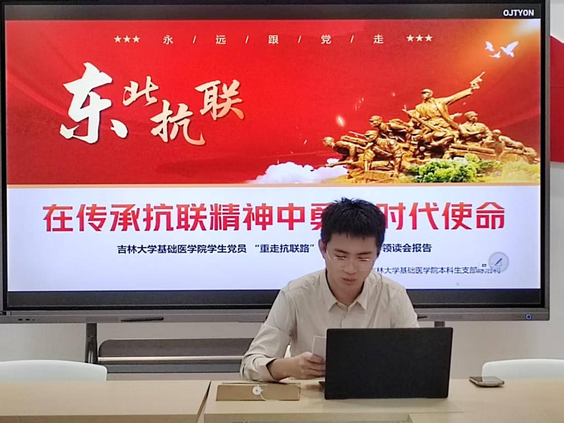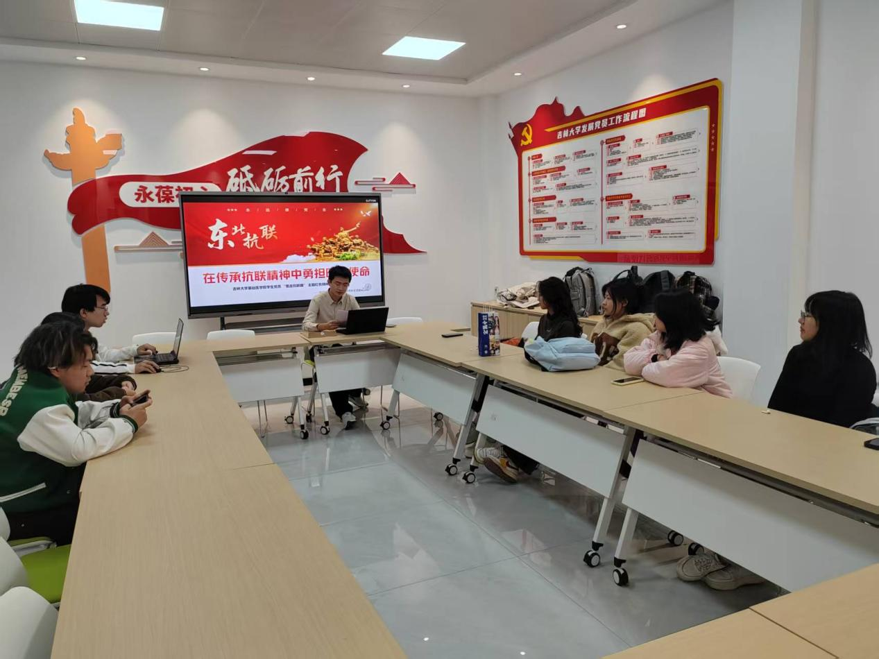 于新民一站式学生社区党建活动室举办“在传承抗联精神中勇担时代使命”——学生党员“重走抗联路”主题红色精神领读会。本科生党支部全体党员及“星火燎原 领航青春”入党积极分子参与活动。