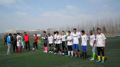 4月27日下午,白求恩医学院再战地球科学学院,争夺决赛名额。院代表队在比赛开场时防守失误,让对手连进两球。但他们顶住压力,凭着队员的默契配合,下半场比赛,将比分追为2比2平。就在比赛接近尾声时,对方获得点球机会,最终白求恩医学院以2比3惜败。
