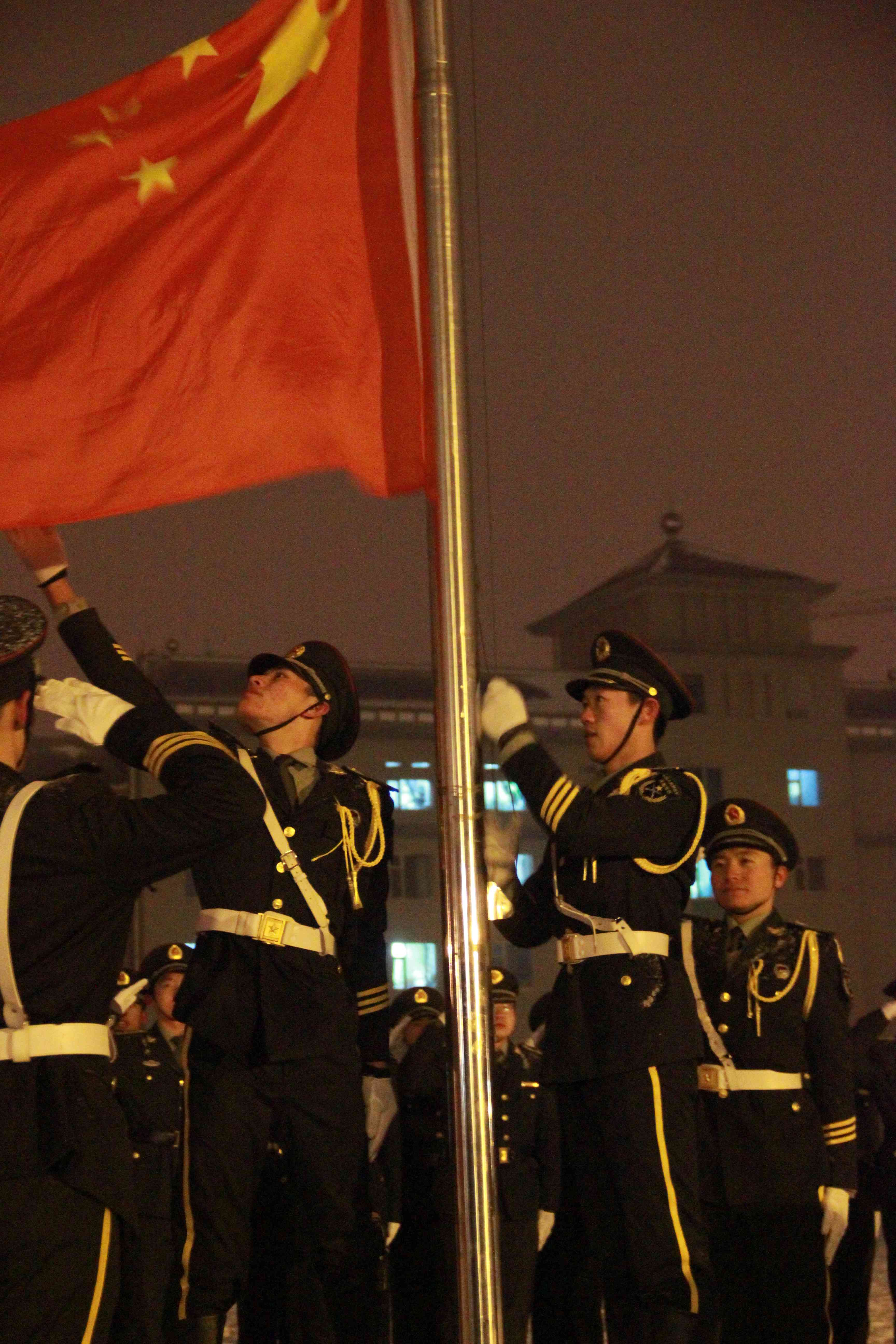 国防生模拟二连连长吴乃超主持。整齐的仪仗队迈着铿锵的脚步拉开了仪式的序幕,在庄严激昂的国歌声中,鲜艳的五星红旗冉冉升起。国防生代表郑天洋发言,表达了不忘国耻,铭记历史并担负起历史重任的决心。随后,魏宇航作为党员代表发言,鼓励同学们承担责任,不忘先辈们的血汗,珍惜眼前的幸福生活,为建设祖国的明天而努力学习,努力奋斗。