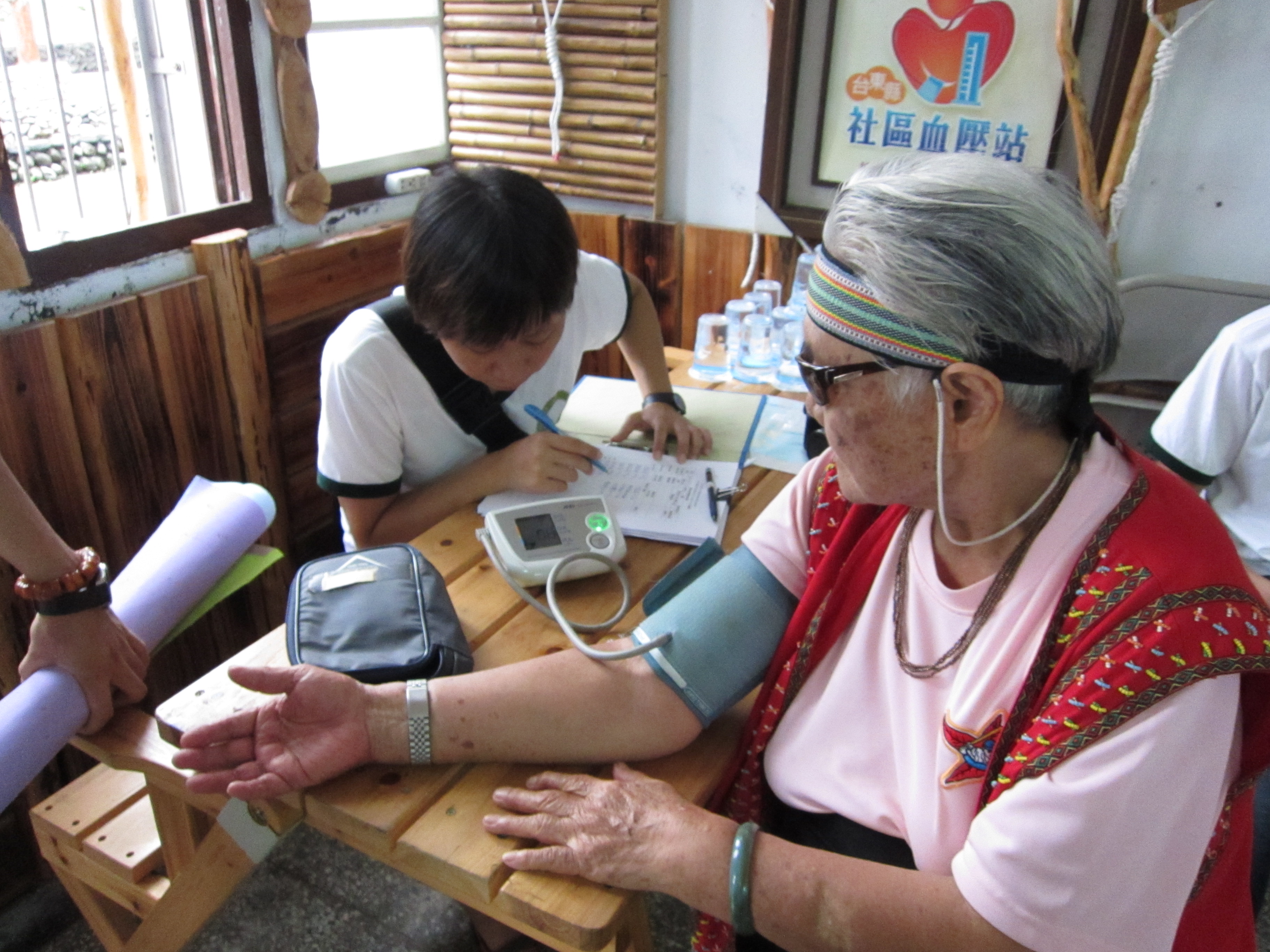 我们首先为老人们测量血压,又协助社区工作人员给老人发送荧光手环,这种手环是由台东县专门为关爱老人所制的,防止老人在傍晚走失。之后我们带领老人们一起做起了健康操,这里的老人非常有活力,虽然大多数都是七八十岁的老人但跳起操幅度如此之大的健康操,仍然精力充沛,活力四射。充分表现出他们热爱生命,追求健康的生活态度。