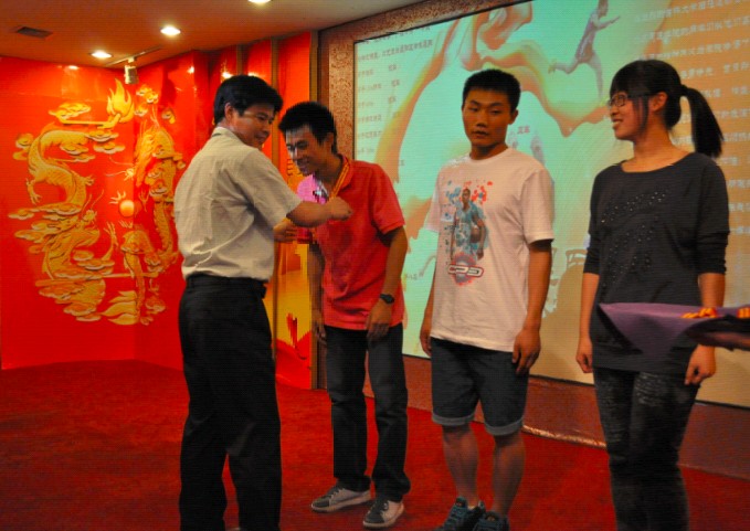 随后,屈英和为在运动会中获得金牌的运动员代表颁奖,并合影留念。整个会场气氛融洽,大家在欢乐中共同分享成功的喜悦。(学生记者:任景炎)