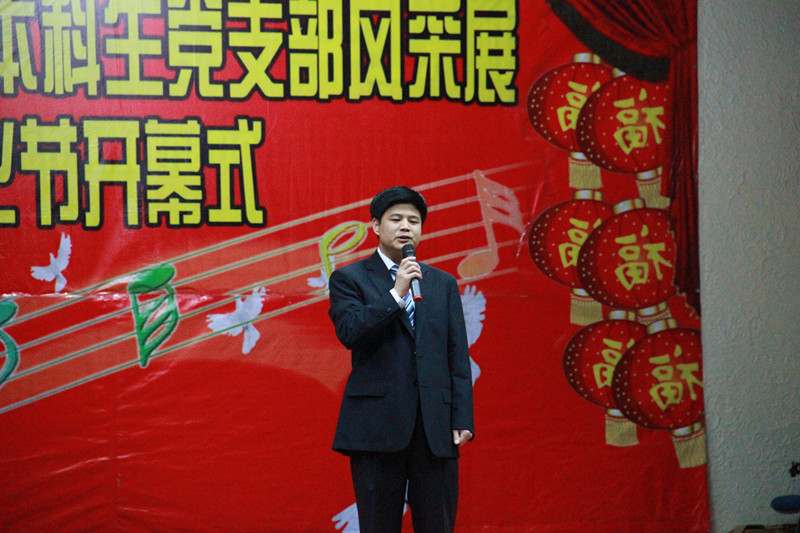 开幕式在国防生铿锵有力的军歌合唱声中拉开了帷幕。首先,屈英和发表开幕式致辞。他在致辞中强调要重视在文化节中展示我院学生风貌,进一步融洽师生关系,并且要在党支部风采展示中增强党支部活力,使每个党员在党支部建设中进步。随后,各年级党支部纷纷登上舞台,精彩的演出使场下掌声雷动,现场高潮迭起。本科生2008级第二党支部书记、2011年长春市十佳大学生、2011年色情短剧