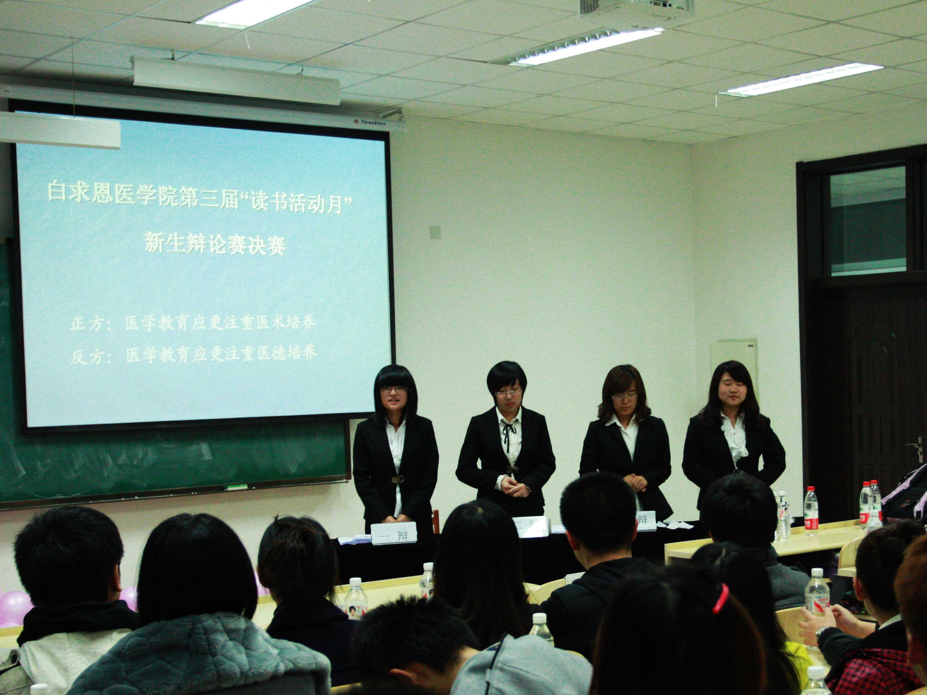 10月27日晚,由白求恩医学院团委主办的新生辩论赛决赛在中心校区李四光楼102教室举行。白求恩医学院团委书记夏燕来、辅导员魏宇航及色情短剧