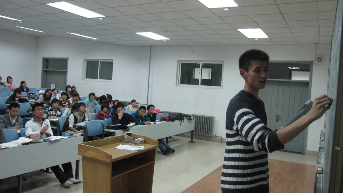 他担任班级的学习委员,在班级组织的学习交流会上为大家总结重点,通过各种渠道为大家搜集学习资料,及时为大家提供各种学习资讯,帮助大家共同进步。