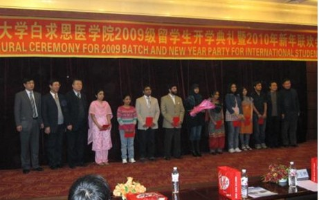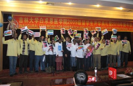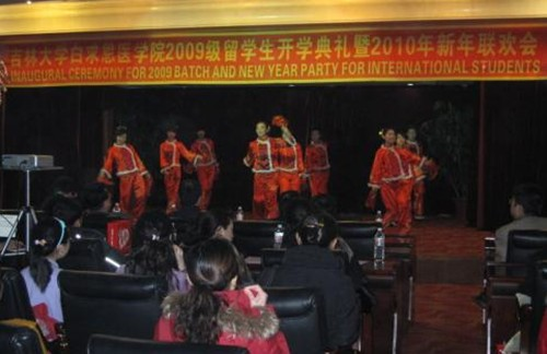 白求恩医学院2009级留学生开学典礼暨2010年新年联欢会,常务副校长兼白求恩医学院院长李玉林出席典礼并观看联欢演出。