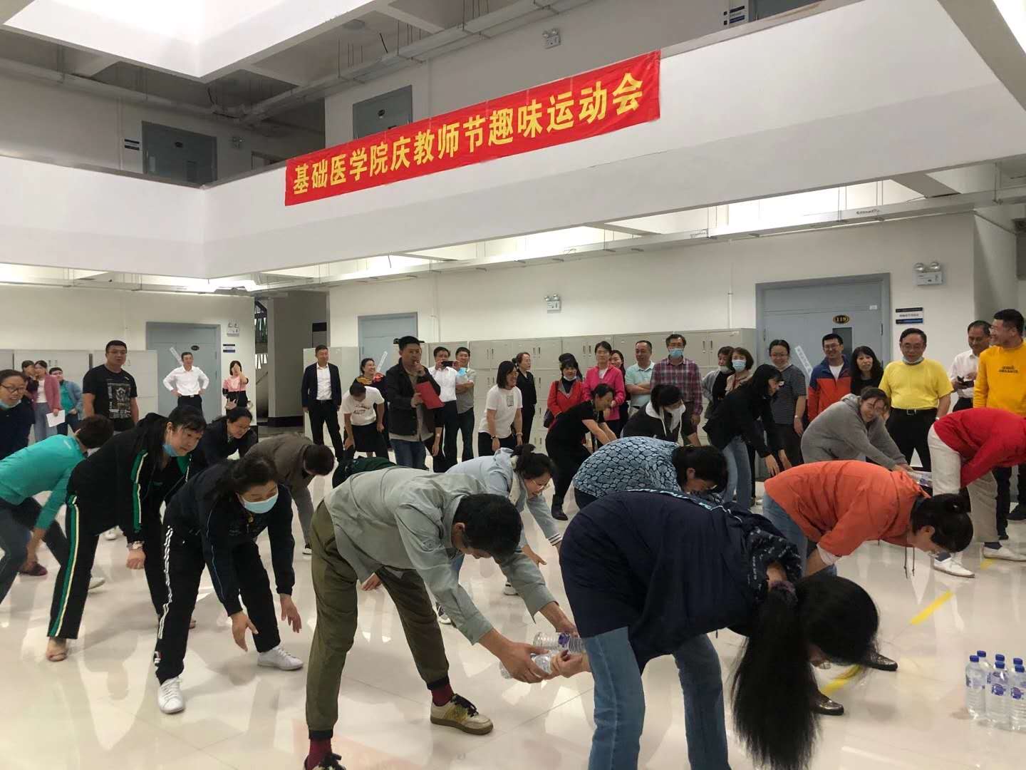 于9月9日下午,在基础医学实验教学中心中厅举办了2020年庆教师节趣味运动会。