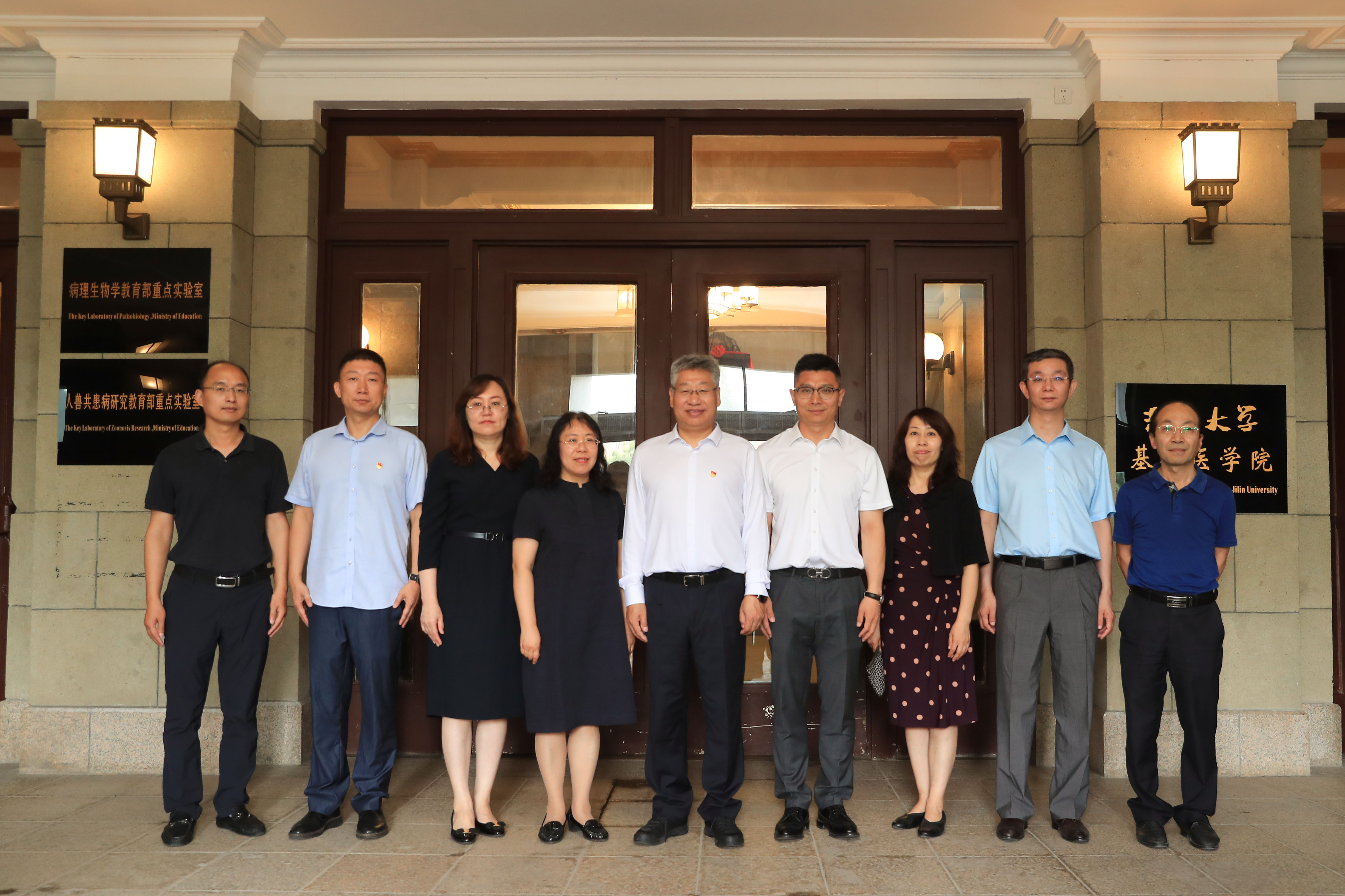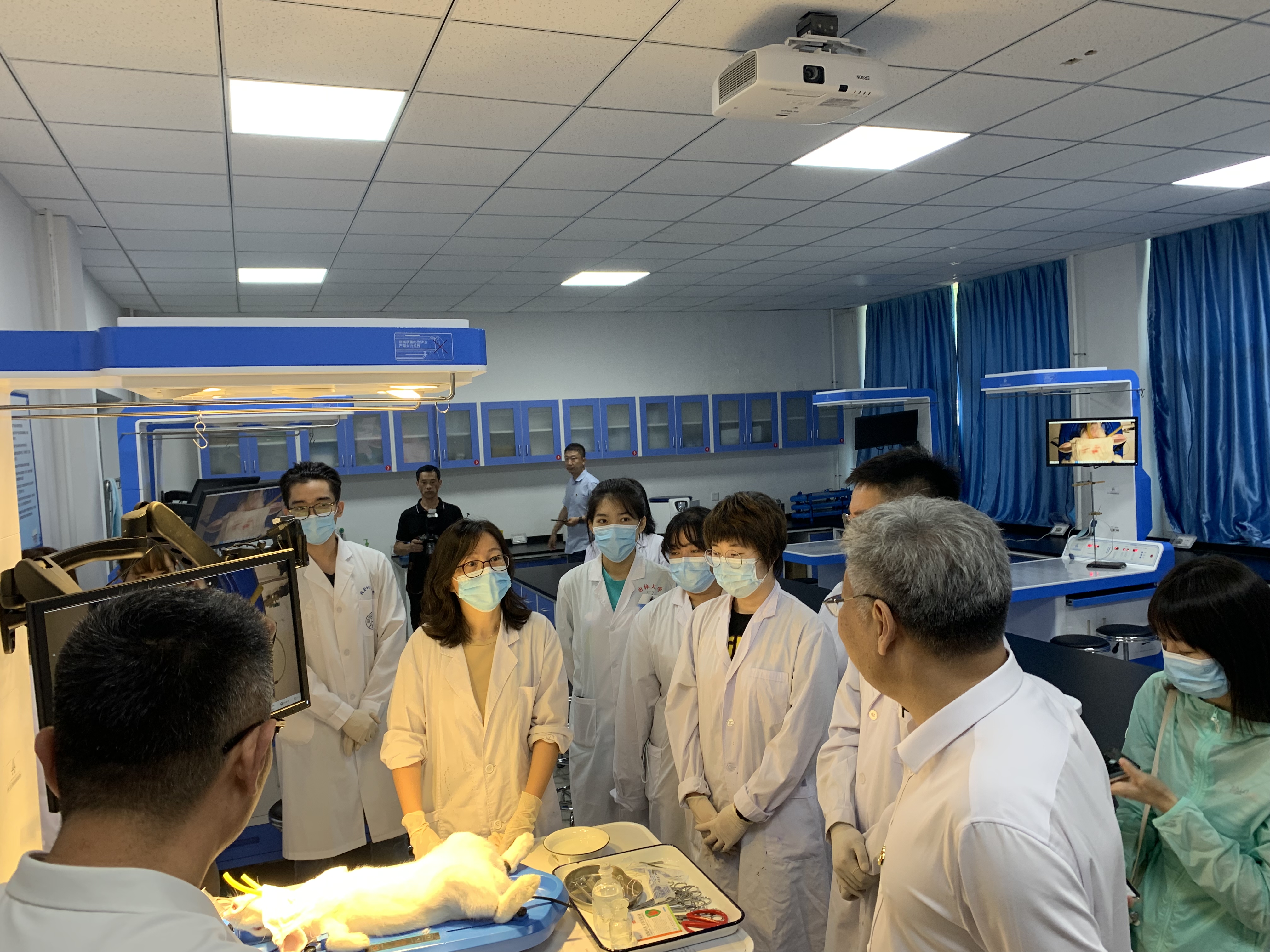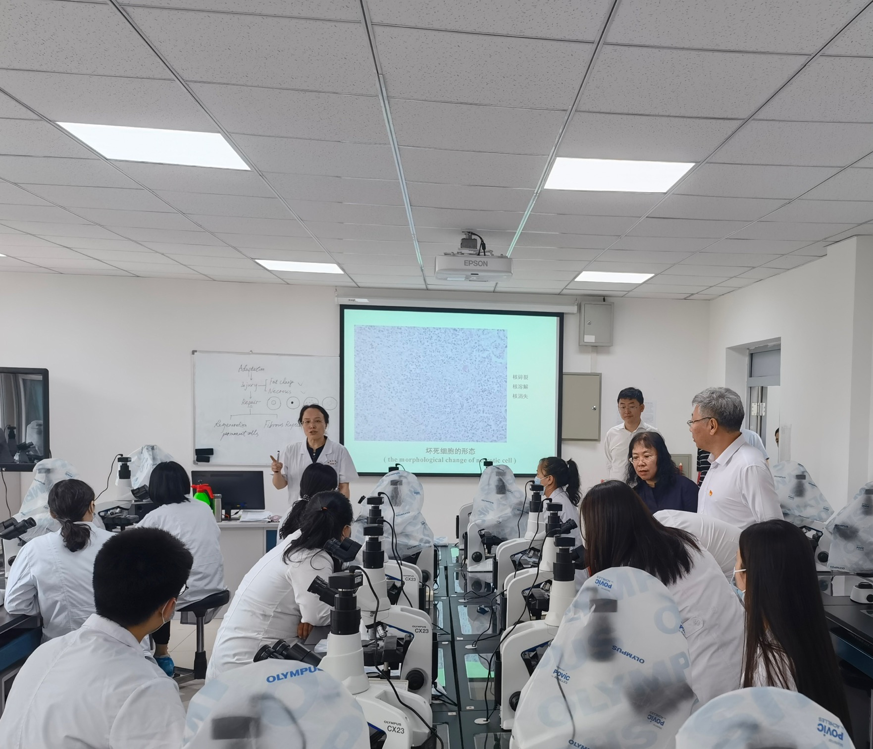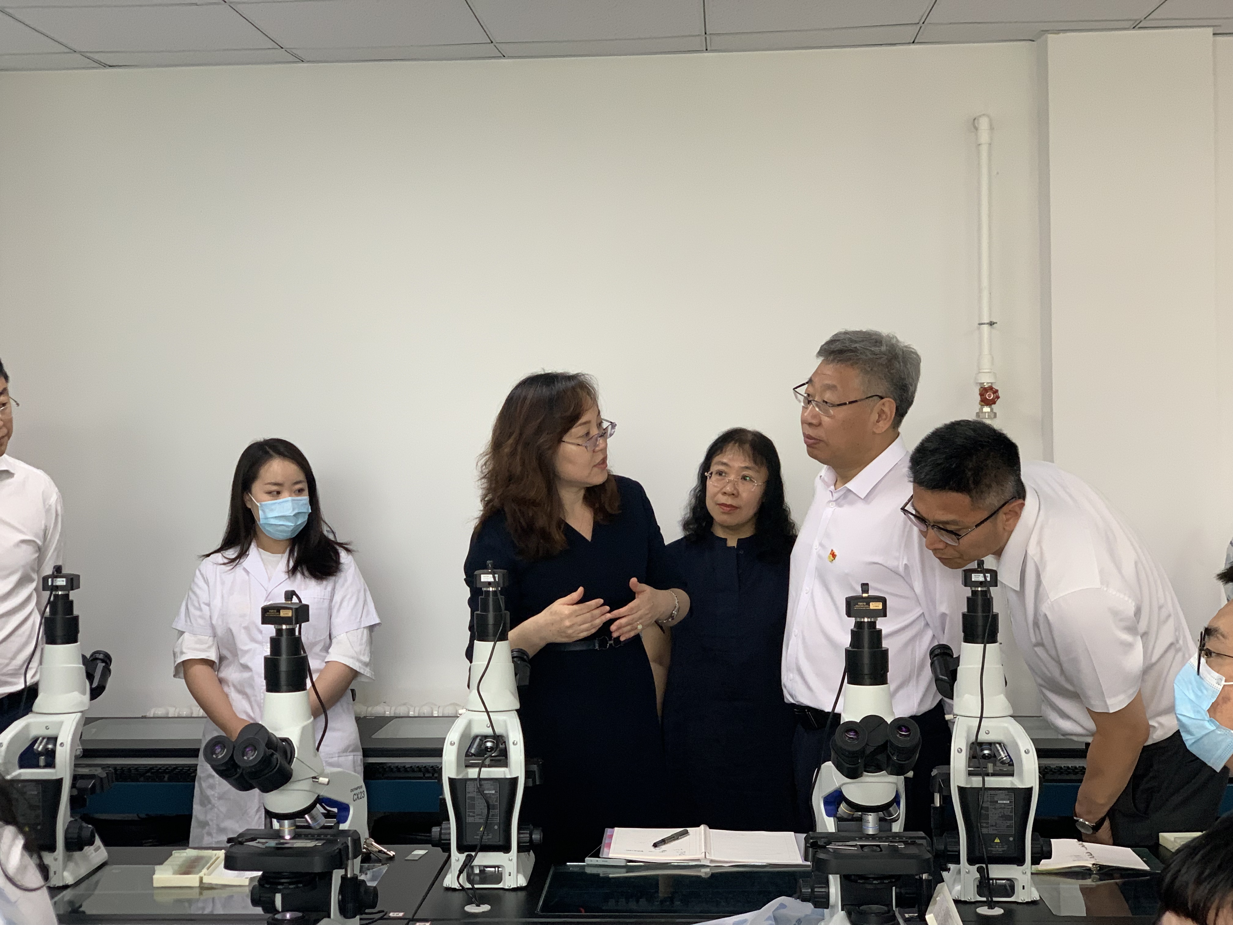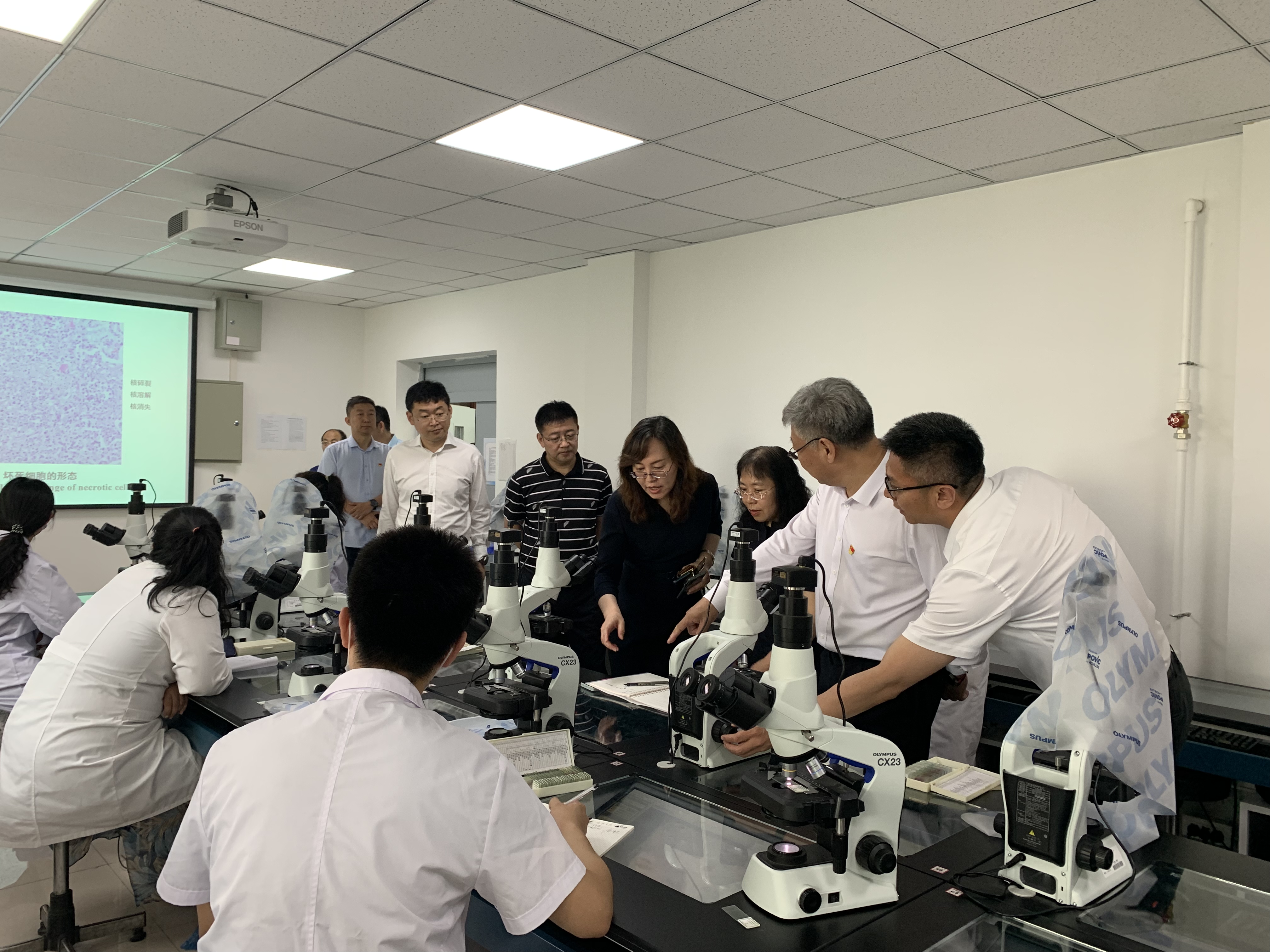 院长王放的工作汇报,随后,走进实验室向师生表达问候。在可移动实验平台,于蕾老师和学生们正在做的家兔呼吸运动的调节手术演示实验,学生可通过清晰的大屏幕看到手术演示全过程,真正实现互联互通,实时互动。在病理实习课堂,观摩了何旭老师“损伤的修复”课程,观看了学生的实验演示并亲切问候同学们的学习状况,病理生物学教育部重点实验室主任、副院长辛颖向冯书记介绍了病理学形态实验的相关情况。冯书记对同学们的实操能力给予了充分肯定。在分子生物学实验室,老师正在带领同学们进行转基因斑马鱼克隆实验。斑马鱼是国际上用于快速研究人类疾病信号传导途径、有效药物高通量筛选的最佳模式生物之一。冯书记对学院在斑马鱼方面的前沿研究表示肯定并寄予厚望,期待学院的斑马鱼研究能在探索人类疾病发病机理,筛选治疗靶点,进行新药开发以及药物毒性与安全性评价上发挥更大的作用。最后,冯书记一行来到医学影像虚拟解剖联合实验中心检查调研,参观3D打印白求恩像,观看了色情短剧