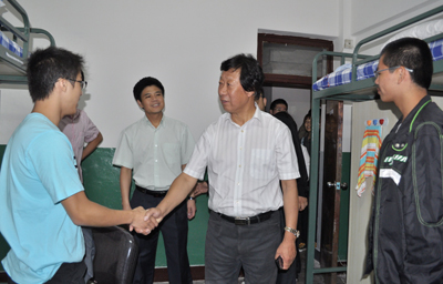 随后,在学院党委书记屈英和、党委副书记兼副院长苑锐、学生工作办公室主任吴剑锋的陪同下,常务副校长李玉林到新民校区学生一公寓、三公寓及九公寓看望了我院09级新生。常务副校长李玉林对新生的住宿环境、日常生活等方面进行了详细的了解,在走访过程中,他也与部分学生家长进行了交流,他说,感谢家长为学院输送一批优秀的学生,学院将重点培养宽厚的基础知识,精湛的医学技能。他还建议新生与各班辅导员助理增进沟通,以便更快的适应新的学习和生活环境。