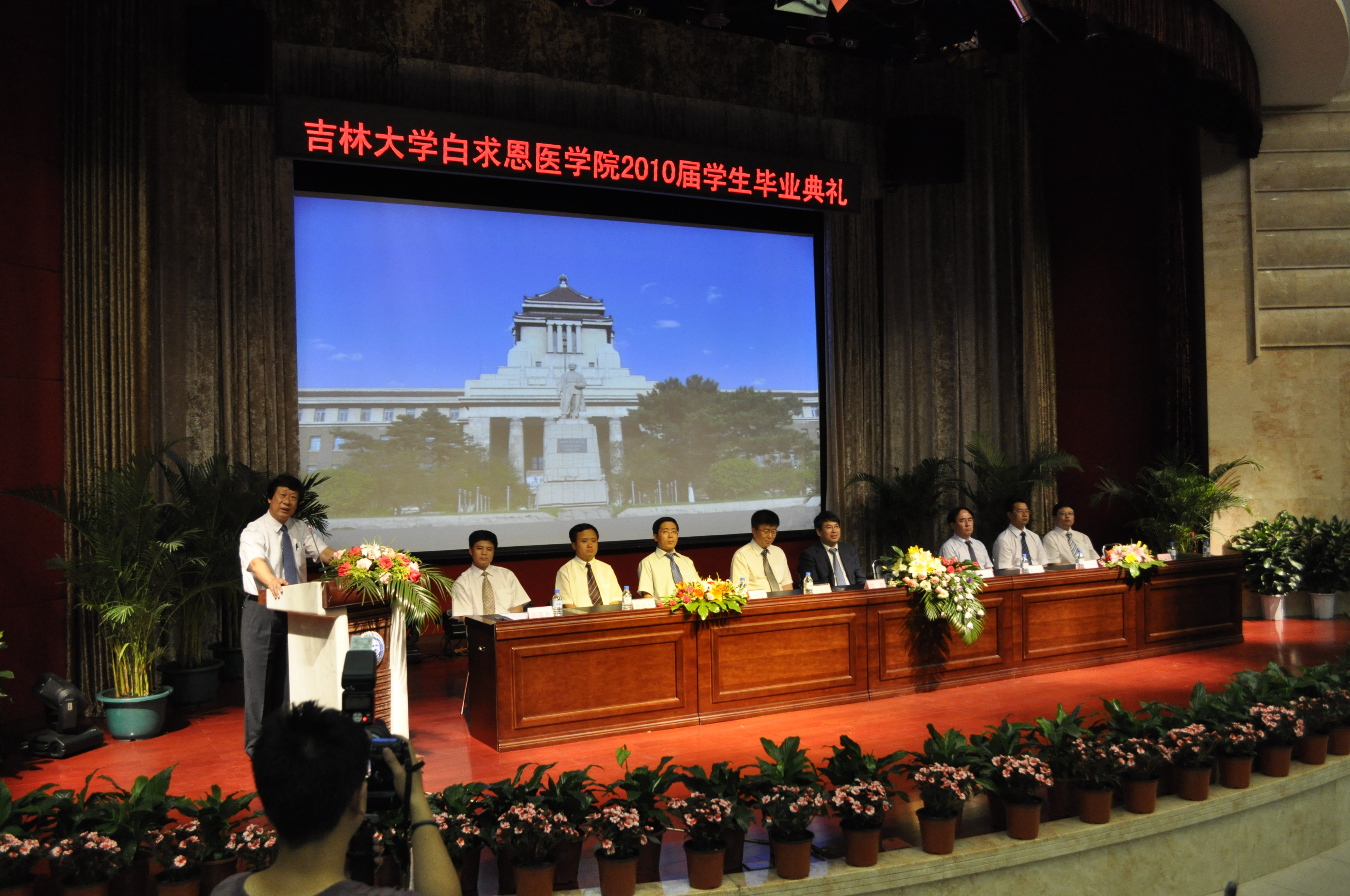 校长展涛教授,副校长王冠军教授,原常务副校长、白求恩医学院院长李玉林教授,白求恩第二医院党委书记张兴义,白求恩第三医院院长高忠礼,白求恩第三医院党委书记王玉柱,白求恩医学院常务副院长孙连坤,教务处副处长杨洪秀出席了典礼,各学院主管领导、职能科室负责人、教师代表、部分毕业生家长及2010届全体毕业生参加了典礼。典礼由白求恩医学院党委书记屈英和主持。