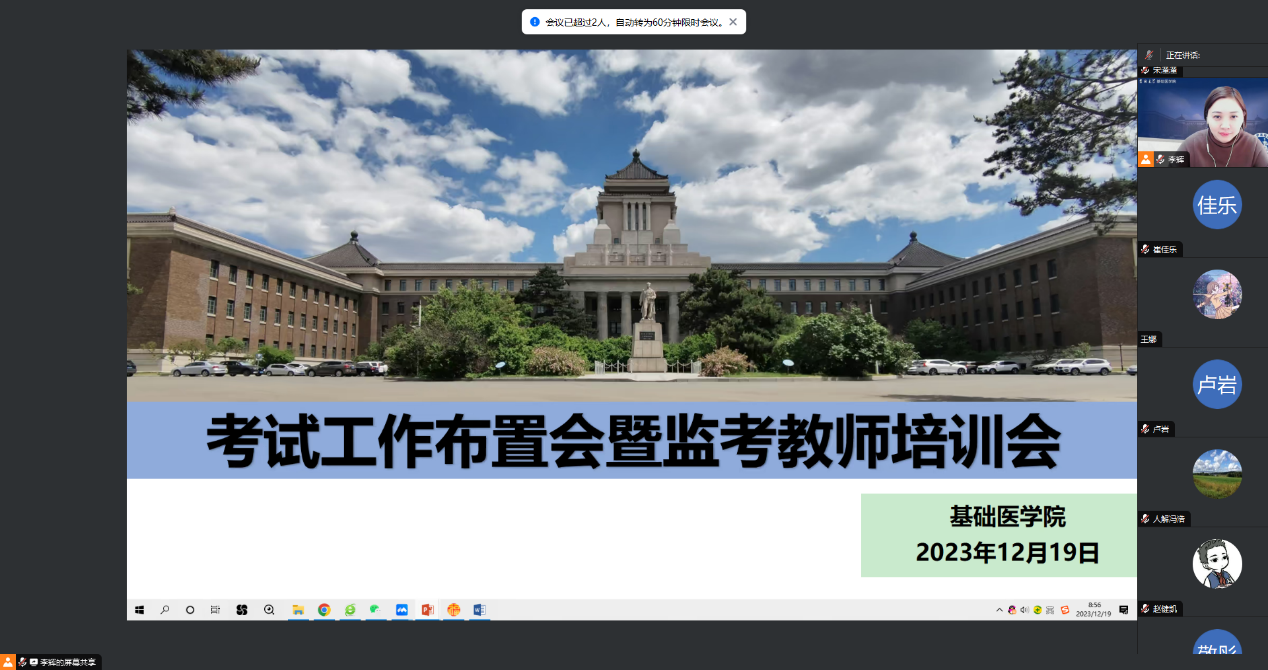 为保证学院教学秩序,规范课程考核管理,营造良好的学风考风,进一步提升学院课程考核管理水平,12月19日上午,色情短剧 通过腾讯会议召开了2023-2024第一学期考试工作布置会暨监考教师培训会。色情短剧 教务办公室全体工作人员、各学系教师代表以及本学期监考教师参加了此次培训会议。会议由学院教务办公室主任李辉主持。