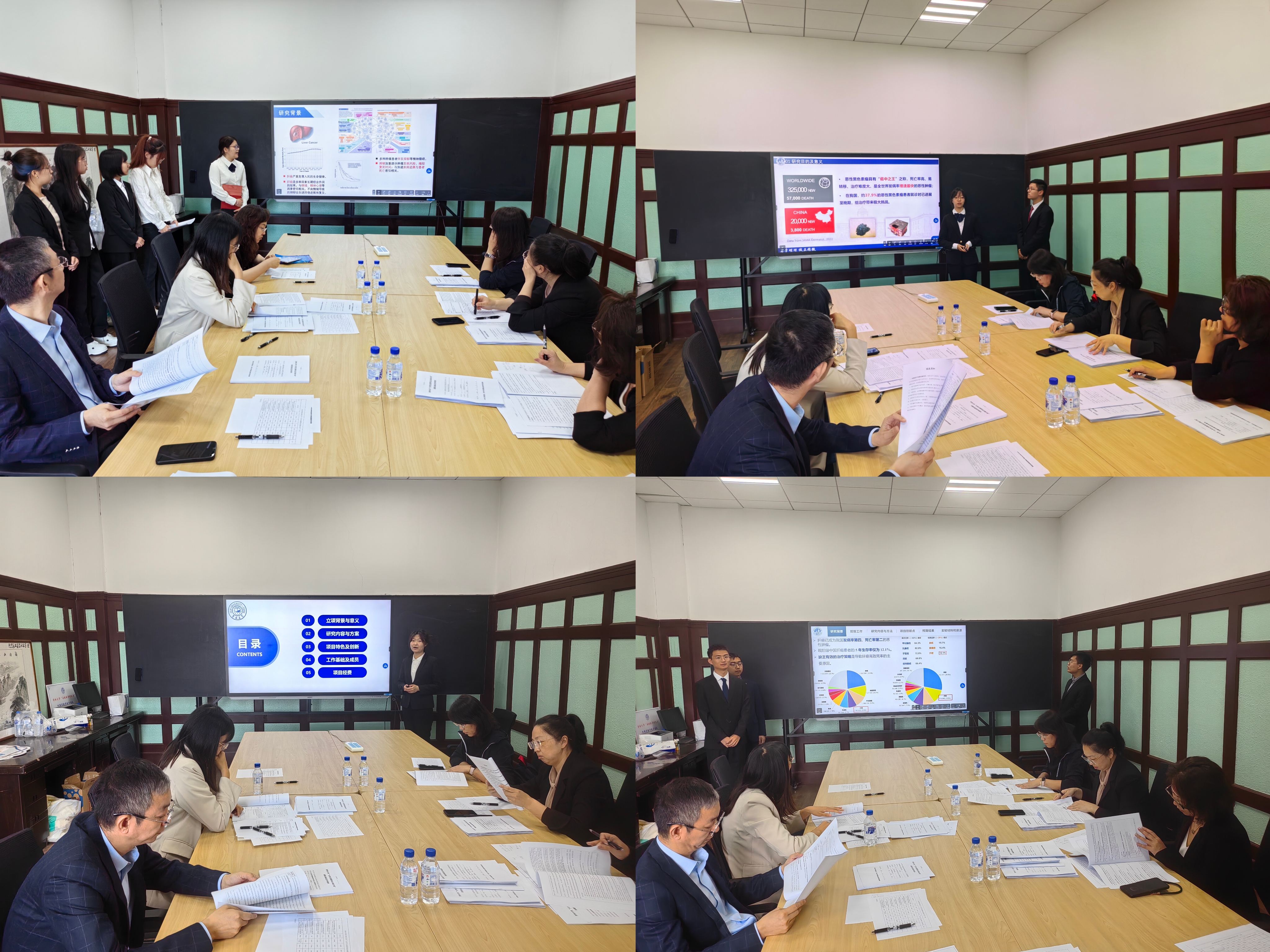 副院长刘海岩教授、院长助理张明教授、免疫学学系主任杨巍教授、医学生物学实验中心主任乔萍副教授、生物化学教研室副主任徐彩娜教授担任本次评委,会议由教学副院长辛颖教授主持。