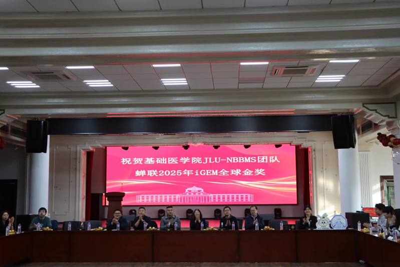 在二楼学术报告厅隆重举行表彰大会,热烈庆祝JLU-NBBMS团队在2025年国际遗传工程机器大赛(iGEM)中再创辉煌,蝉联全球金奖。学院领导、指导教师及全体参赛成员齐聚一堂,共同分享这份荣誉与喜悦,展望科研与创新教育的新征程。