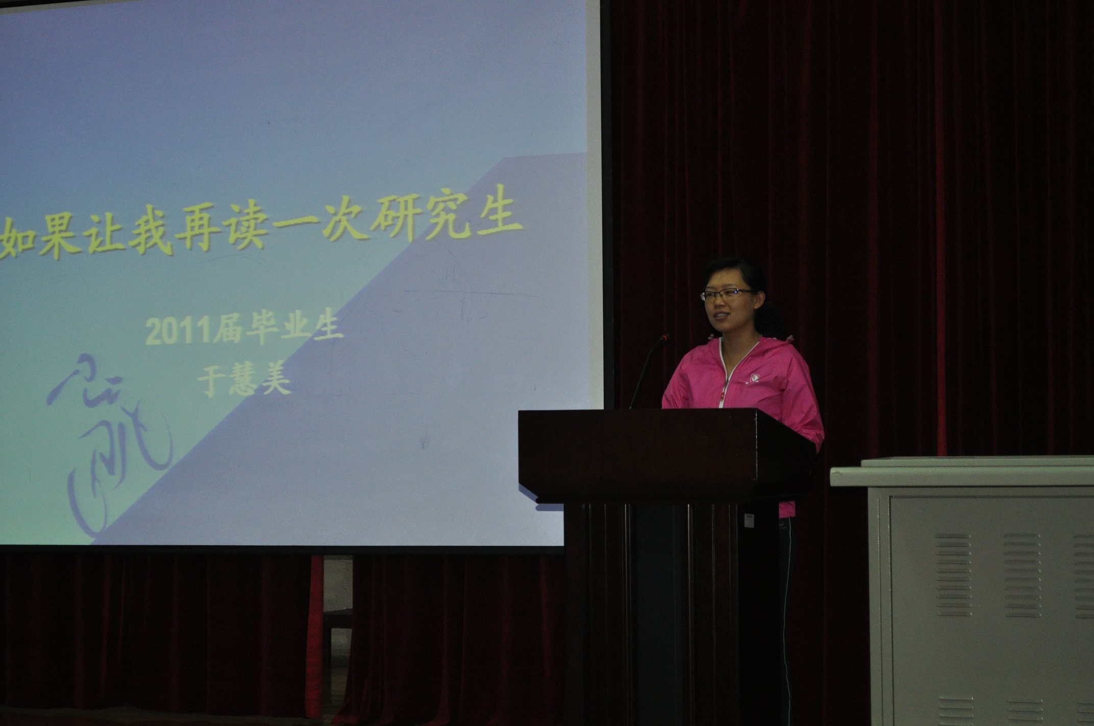 优秀研究生学术经验报告会,邀请我院优秀毕业生苏静、于慧美为研究生新生进行学术指导。会议由研究生办公室主任丁红枫主持。