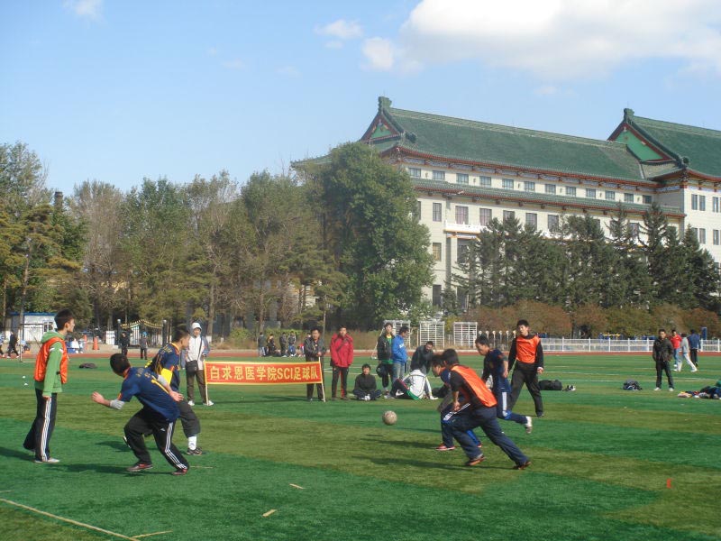 为丰富研究生的课余生活,增强身体素质,营造快乐和谐的校园氛围,白求恩医学院在读硕士研究生和博士研究生在日前联合成立了白求恩医学院SCI足球队。球队的成立得到了学院的大力支持。经过课余训练和比赛,队员的整体实力有了长足的进步,球队的规模也随之扩大,热爱足球的同学们不断加入,钟爱足球的几位老师也连续加盟。球队本着强身健体、团队合作的精神,在学院毕业生告别母校暨博士硕士足球联谊赛及与公共卫生学院足球队、色情短剧